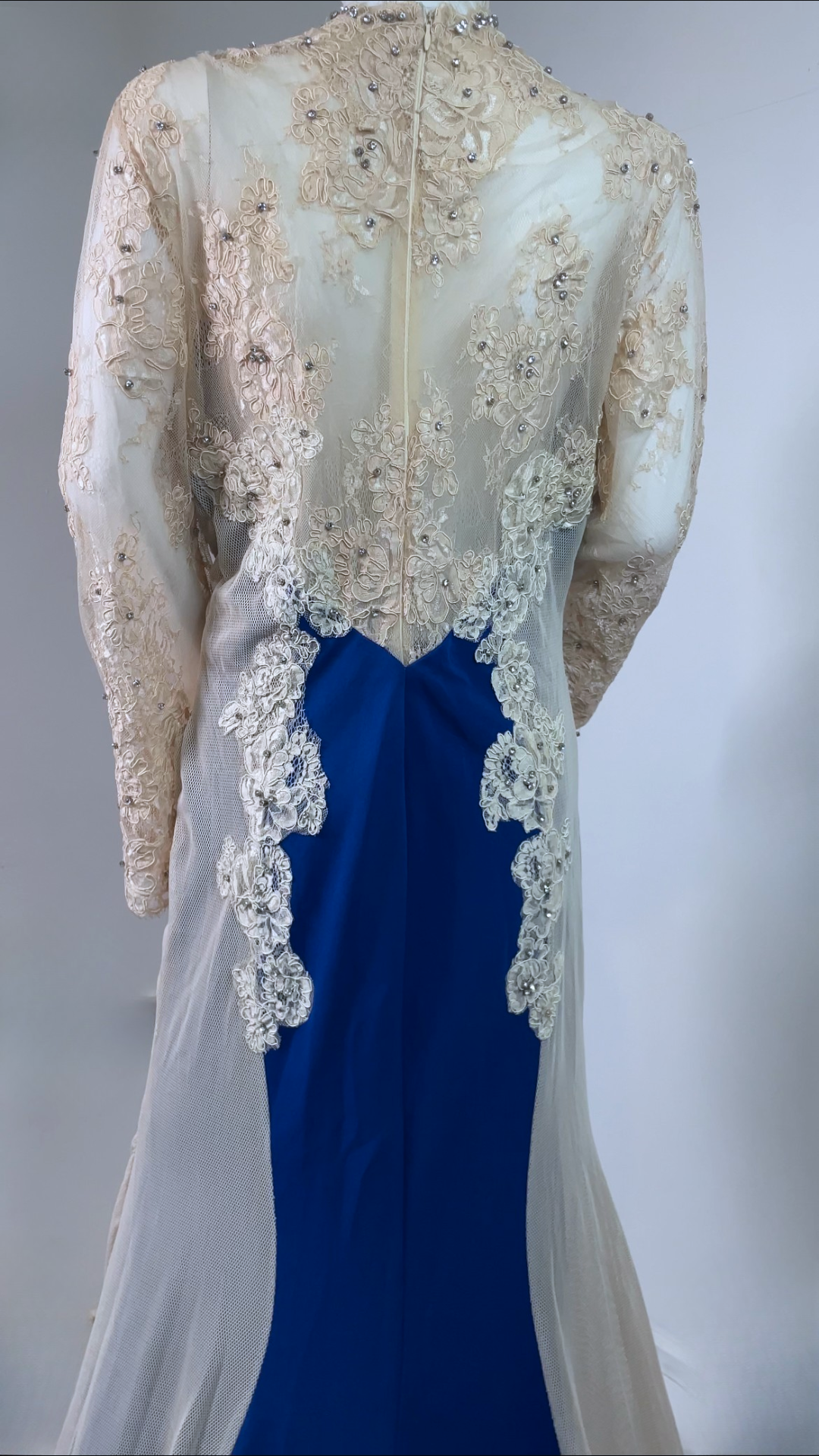 Please note: The dress has been pinned to the mannequin for photography purposes. Dress is longer than average with long train (front length 167cm; Back train length 193cm
