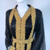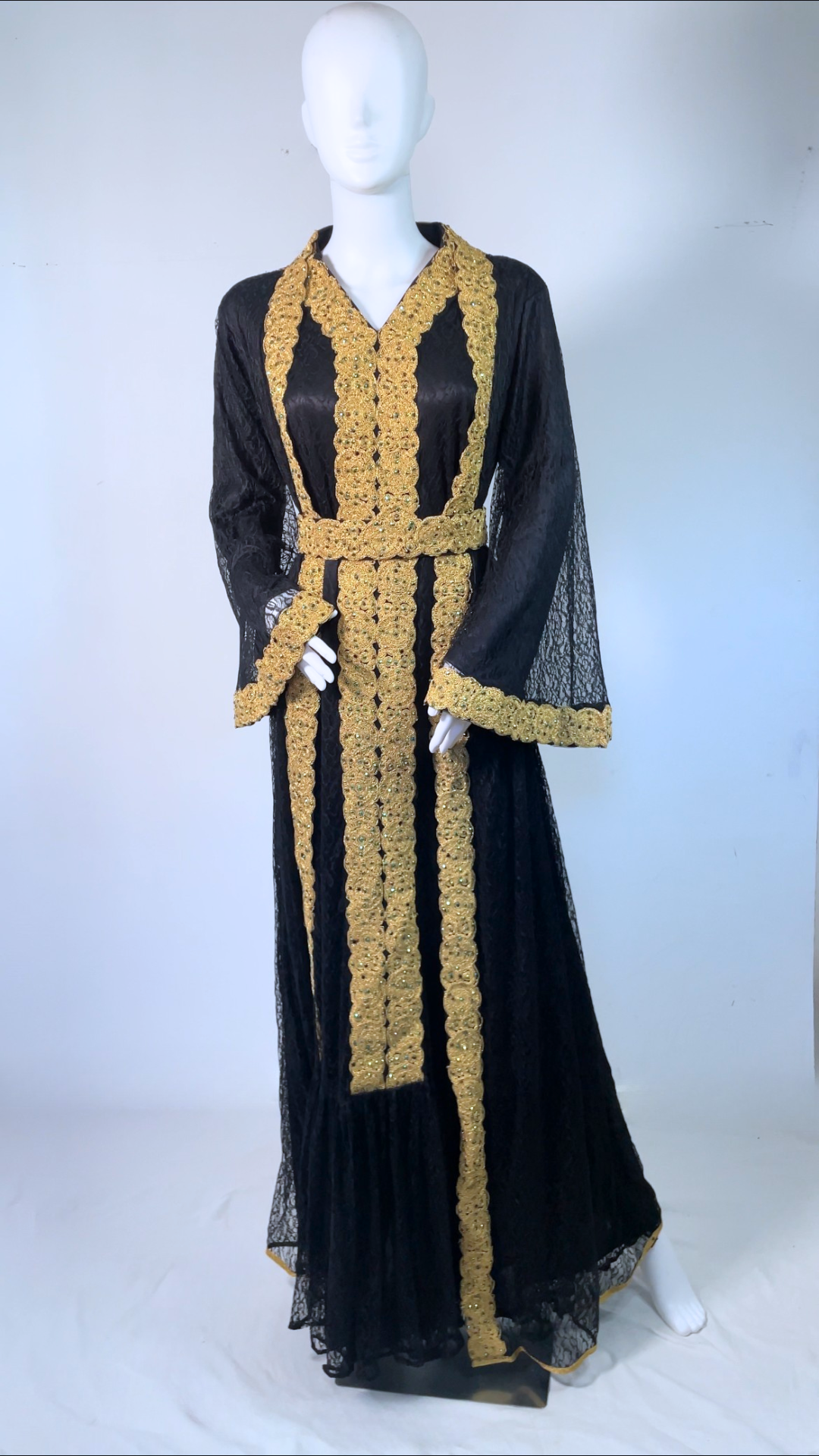 Steal the spotlight with our luxurious 2-piece fully lined, lace kaftan embroidery gold set